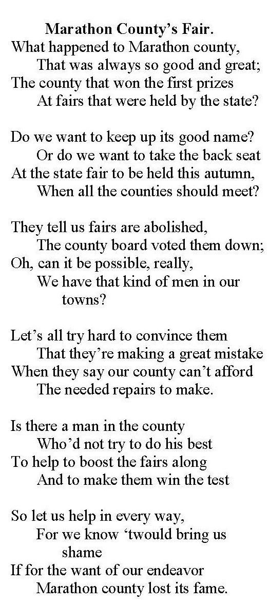 In April 1920, the Marathon County Agricultural Society (who have sponsored and organized the county fair since 1868) made a surprising announcement, the Marathon County Fair was to be canceled.