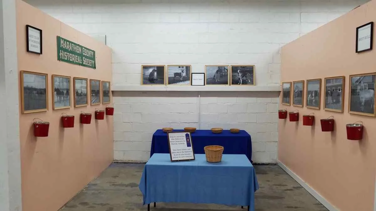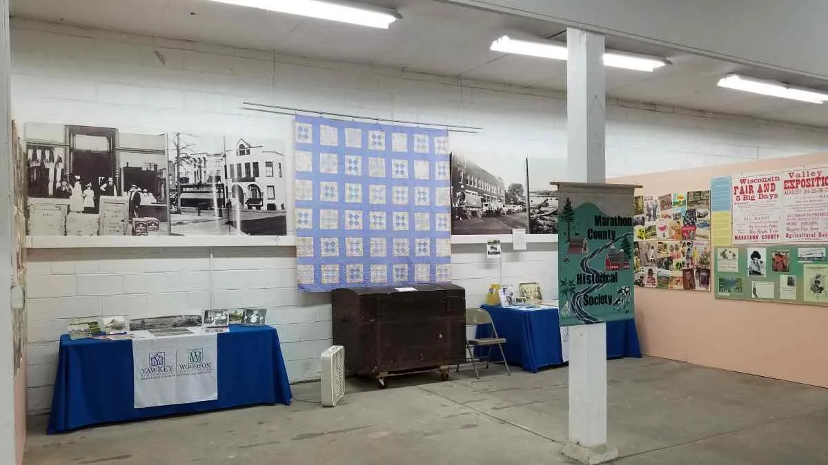 Thank you to everyone who visited our booth at the Wisconsin Valley Fair this year. We brought more displays than usual for this year’s celebration of 150 years of the fair in Marathon County, including those showing the photography of James Colby, a quilt and traveling trunk, the traveling display for our Rural Electrification exhibit, a video kiosk with a slideshow of fair images, and (new for this year) an experiment in historical judging.
