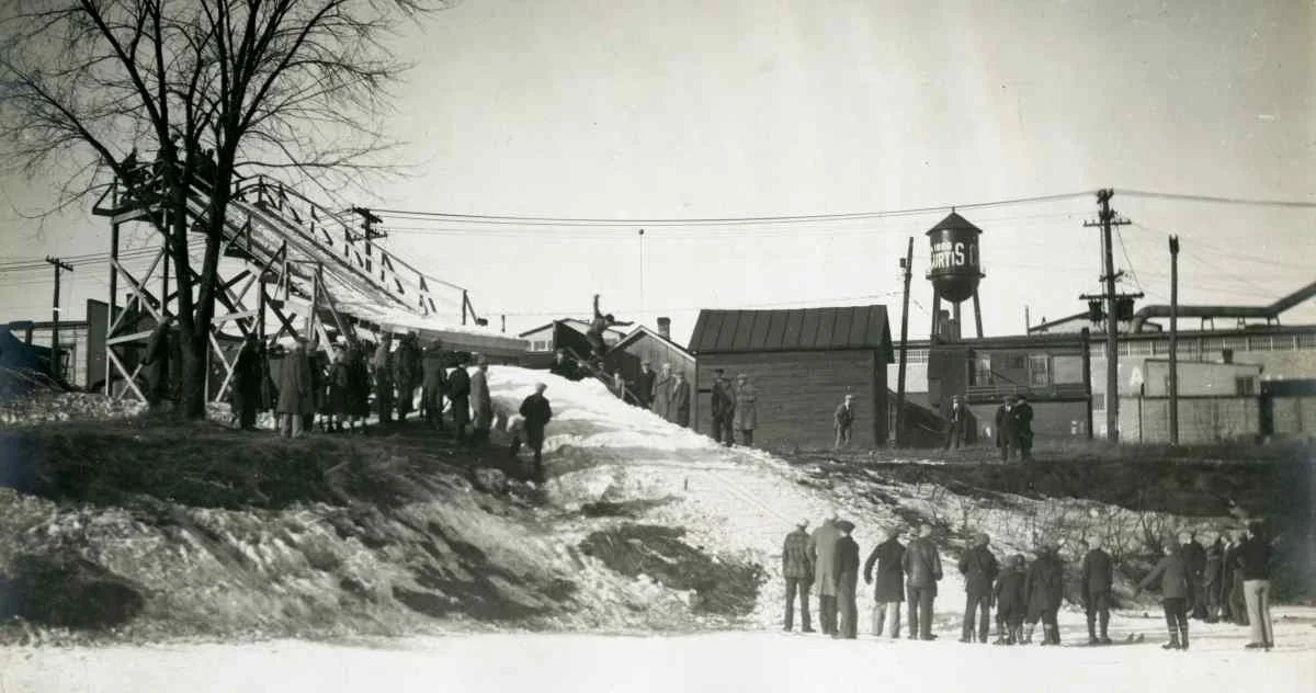 A smaller jump was built on the west bank of the river in Wausau as well, near the Curtis & Yale Plant. And while it was smaller in scale than the Rothschild or Stark Street runs, this slide was said to have been very popular among beginners and helped to bring more people into the sport.