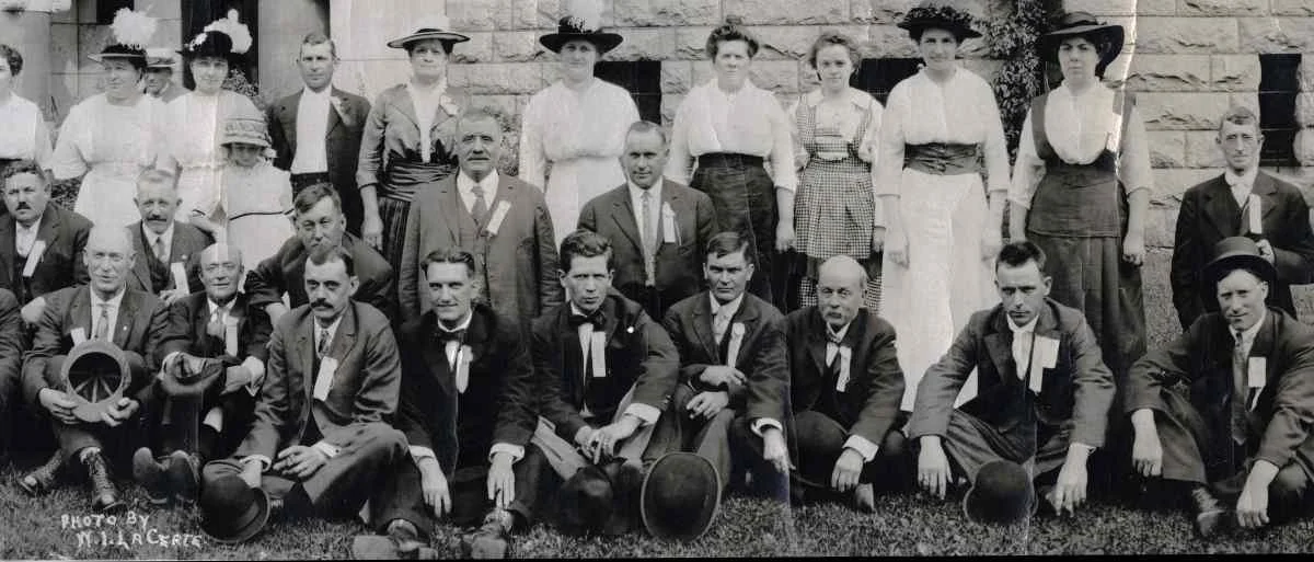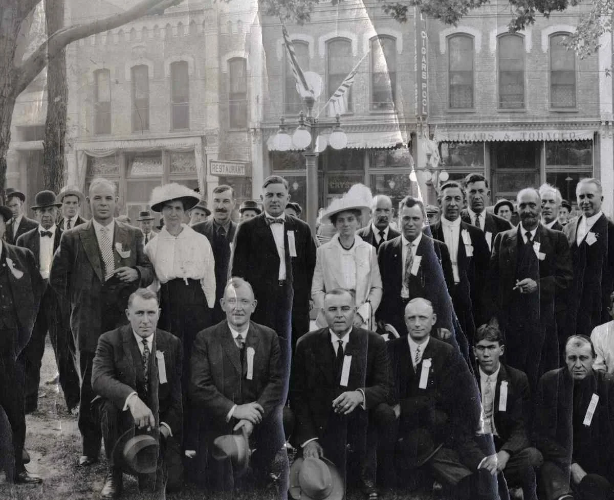 This photo was taken by the prominent local photographer, W.I. LaCerte. In addition to capturing the event for poserity, he also took part in other ways. Over the course of the convention, LaCerte was apparently one of several locals who provided entertainment for the visitors. An account of the many musical performances mentioned LaCerte himself performed the songs, "I Love You Truely," "Elaine," and "When I was a Dreamer."