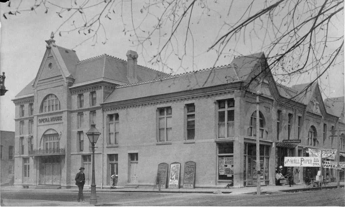 The Wood Opera House, built 1883 on the corner of Scott and Third Streets